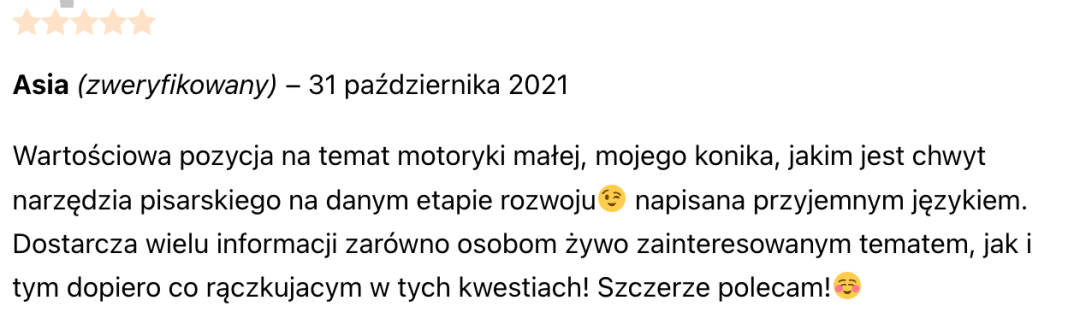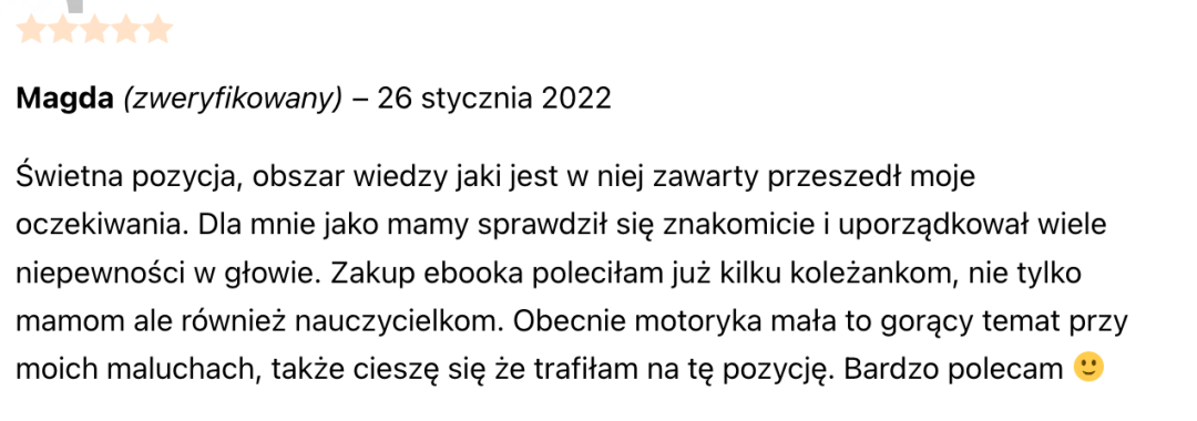 💎 Zobacz, co mówią o tym co robię 💎 Opinie o Pakiecie e-booków o motoryce małej Opinie o moim podejściu do pracy Opinie o kursie mailowym o motoryce małej